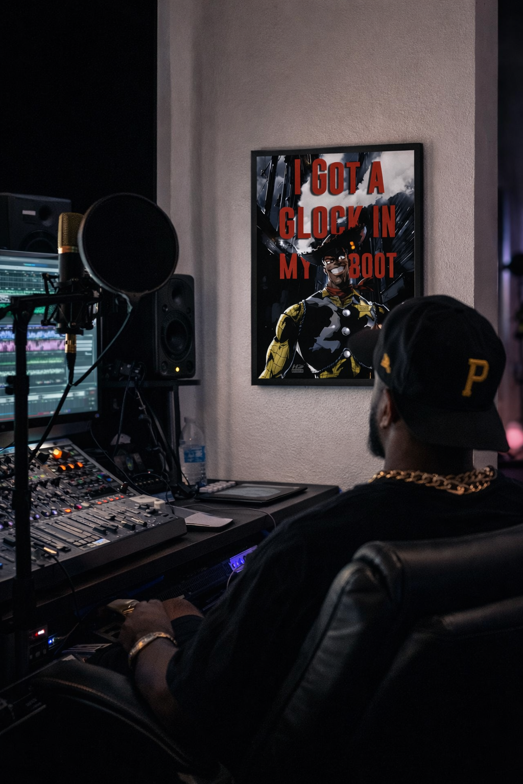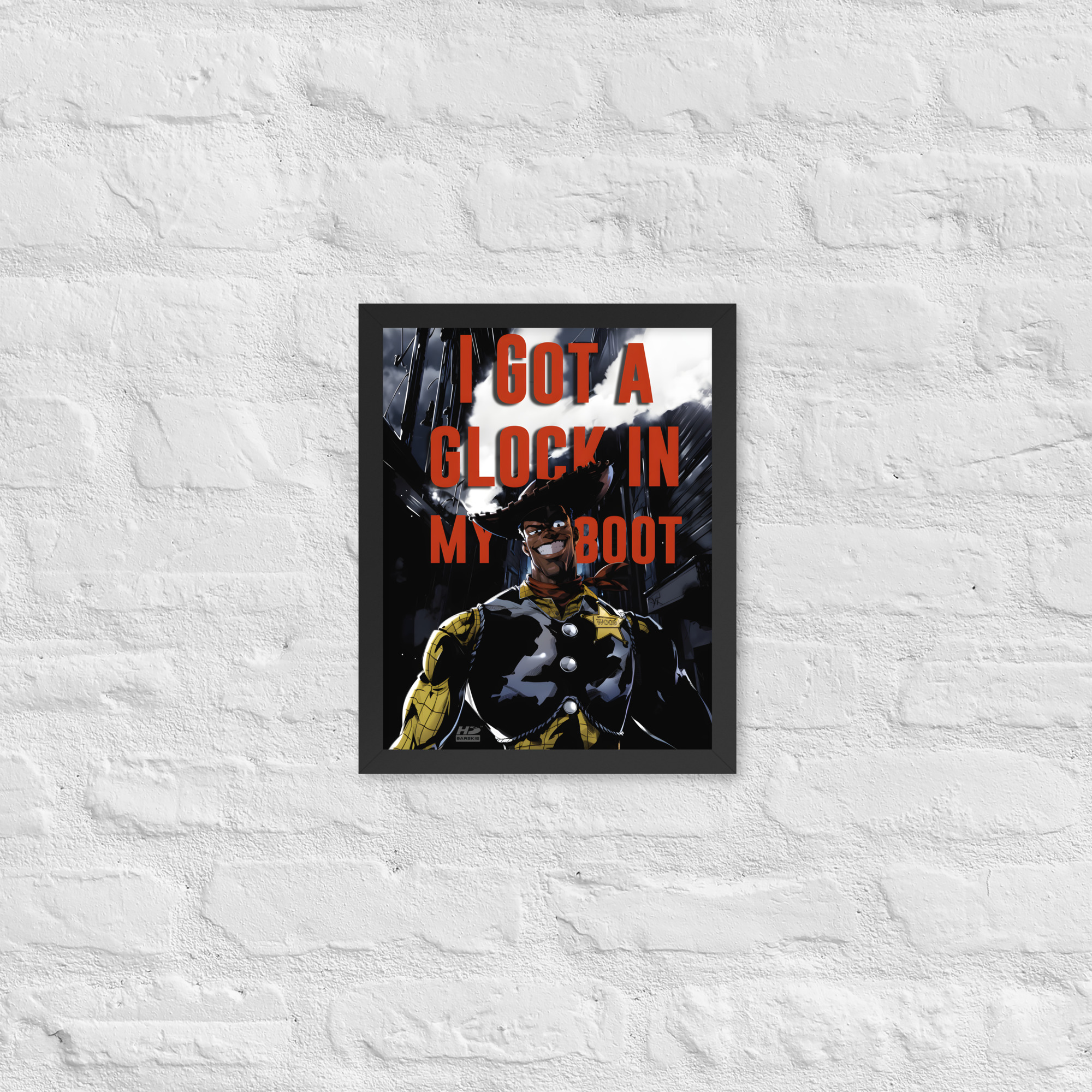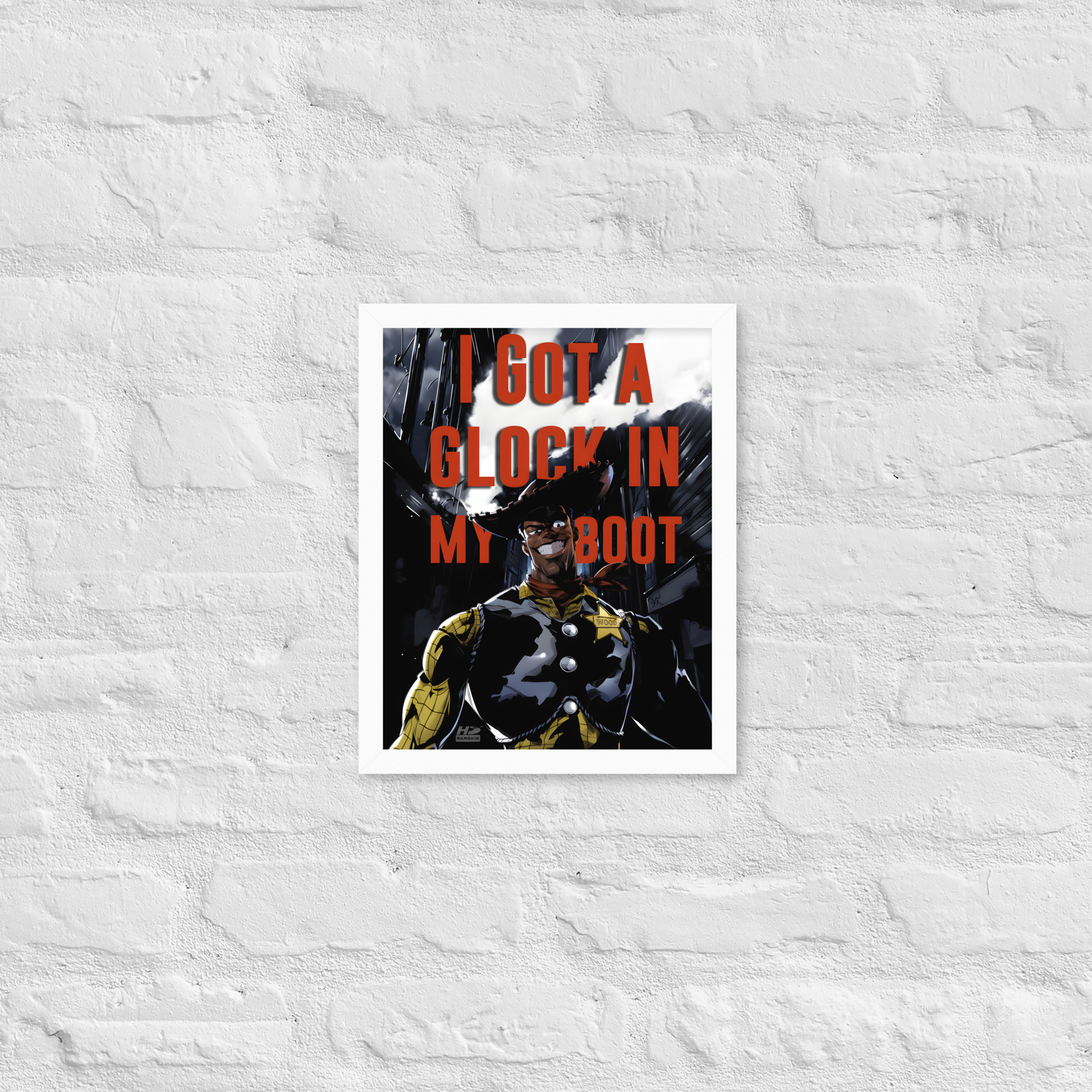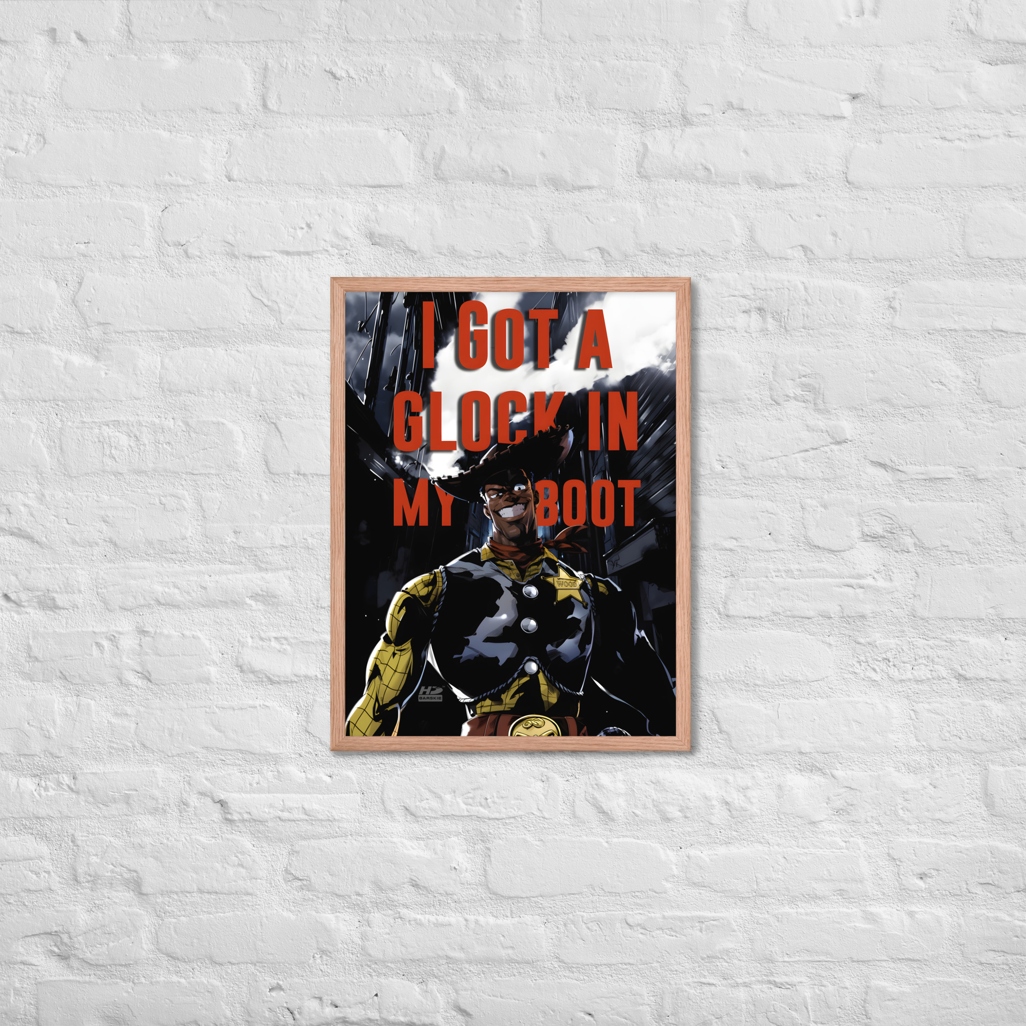 “There’s a Glock In My Boot” reimagines a familiar cowboy icon through a darker, modern lens, turning humor, tension, and cultural commentary into striking wall art.
